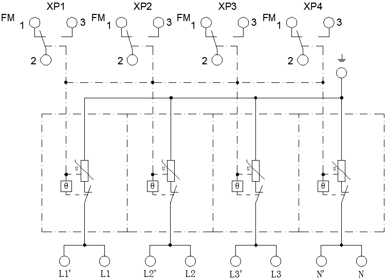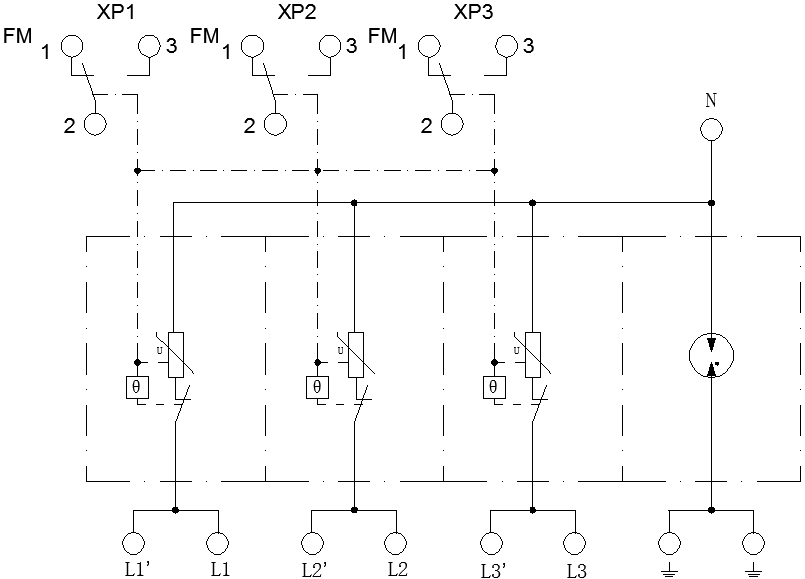 最大持續運行電壓 Uc | 385 V(L-N); 255 V(N-PE) | ||