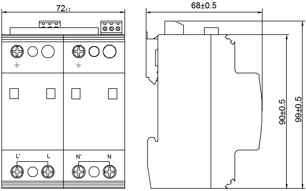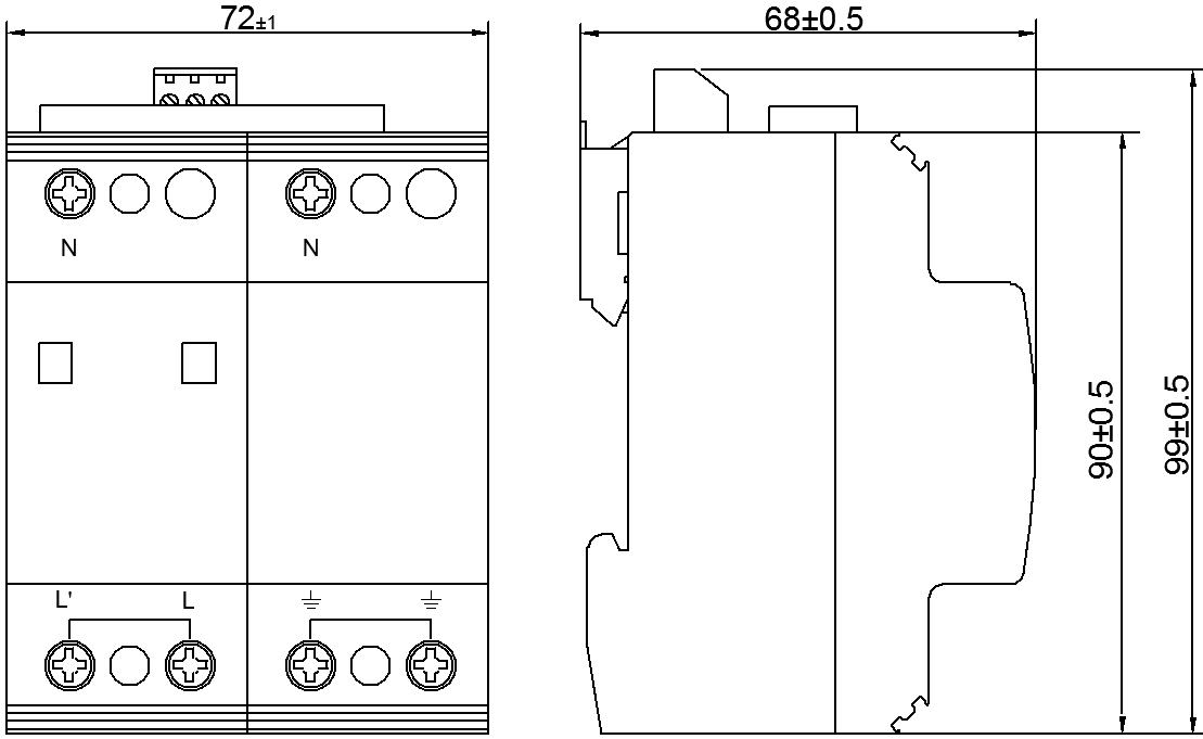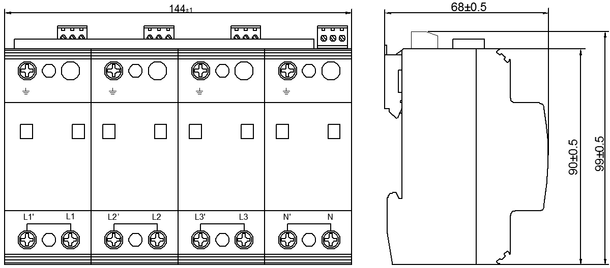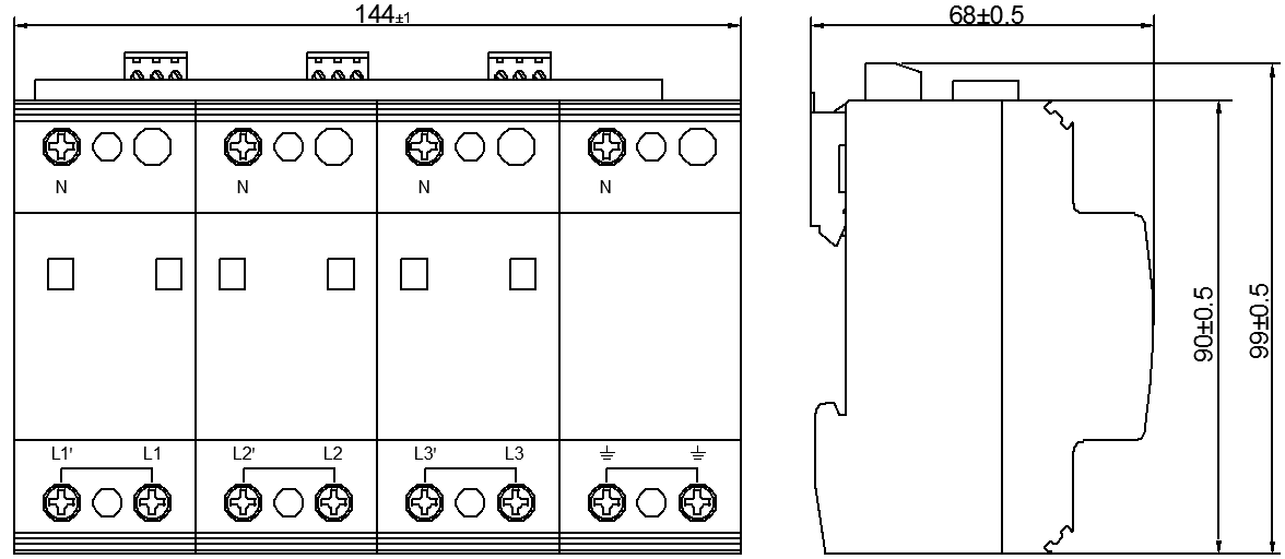 接線(xiàn)端子連接銅導線(xiàn)的截面積 | 多芯線(xiàn):1.5 mm2~25 mm2,單芯線(xiàn): 1.5 mm2~35 mm2 | ||