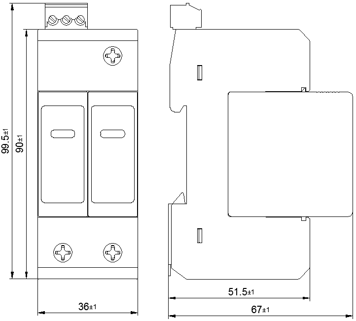接線(xiàn)端子連接銅導線(xiàn)的截面積 | 多芯線(xiàn):1.5 mm2~25 mm2,單芯線(xiàn): 1.5 mm2~35 mm2 | |||