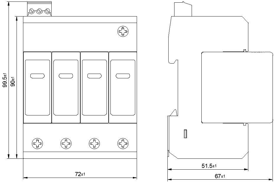 接線(xiàn)端子連接銅導線(xiàn)的截面積 | 多芯線(xiàn):1.5 mm2~25 mm2,單芯線(xiàn): 1.5 mm2~35 mm2 | |||