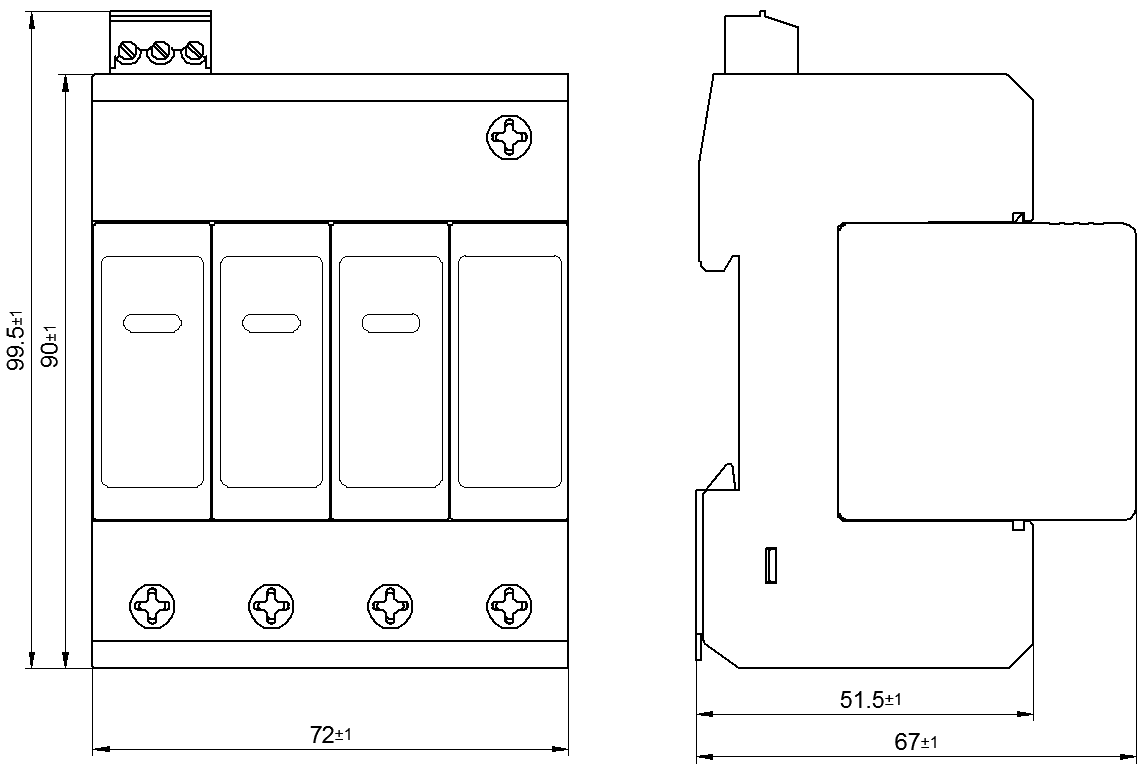 接線(xiàn)端子連接銅導線(xiàn)的截面積 | 多芯線(xiàn):1.5 mm2~25 mm2,單芯線(xiàn): 1.5 mm2~35 mm2 | |||