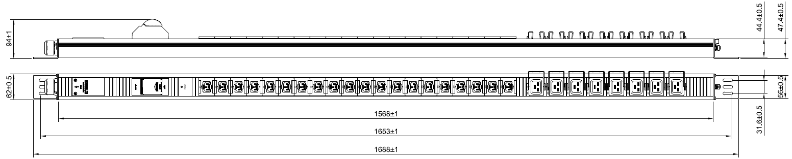 外形尺寸 L*W*H | 1688 mm * 62 mm * 94 mm |