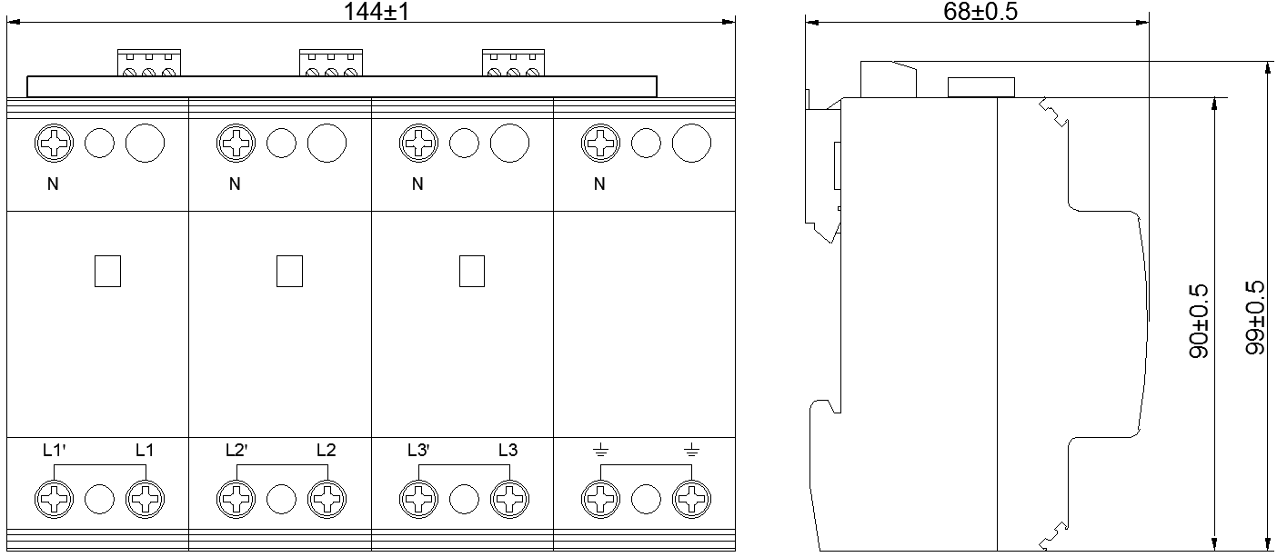 接線(xiàn)端子連接銅導線(xiàn)的截面積 | 多芯線(xiàn):1.5 mm2~25 mm2,單芯線(xiàn): 1.5 mm2~35 mm2 |