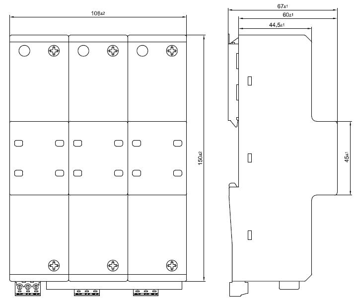 接線(xiàn)端子連接銅導線(xiàn)的截面積 | 多芯線(xiàn):1.5 mm2~25 mm2,單芯線(xiàn):1.5 mm2~35 mm2 |