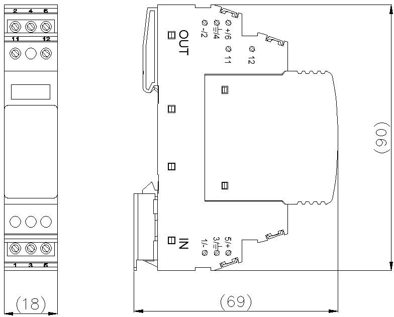 外形尺寸 | 90 mm×18 mm×69 mm (不包含遙信端子) |